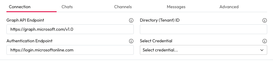 4. **Select Credentials** Choose a credential and secret for Microsoft Teams from the dropdown.&#x20;