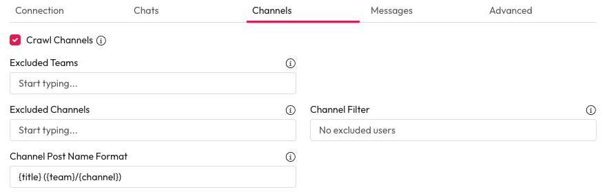 4. **Chat Filter:** Using an OData filter choose the chats that should be crawled.