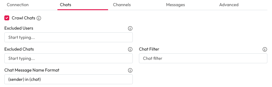 1. **Crawl Chats:** Check this to ensure chats are crawled.