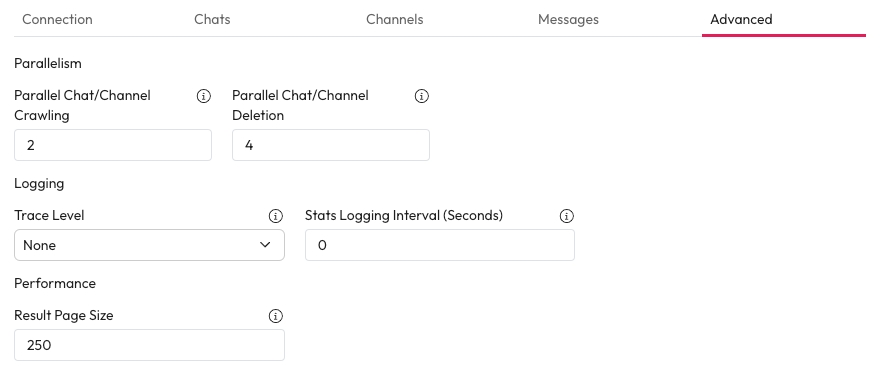 Parallel Chat/Channel Deletion: Enter the maximum number of chats or channels that can be deleted at once.