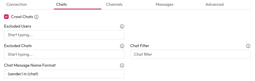 Crawl Chats: Check this to ensure chats are crawled.