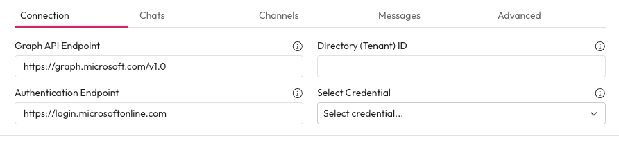 Select Credentials Choose a credential and secret for Microsoft Teams from the dropdown.