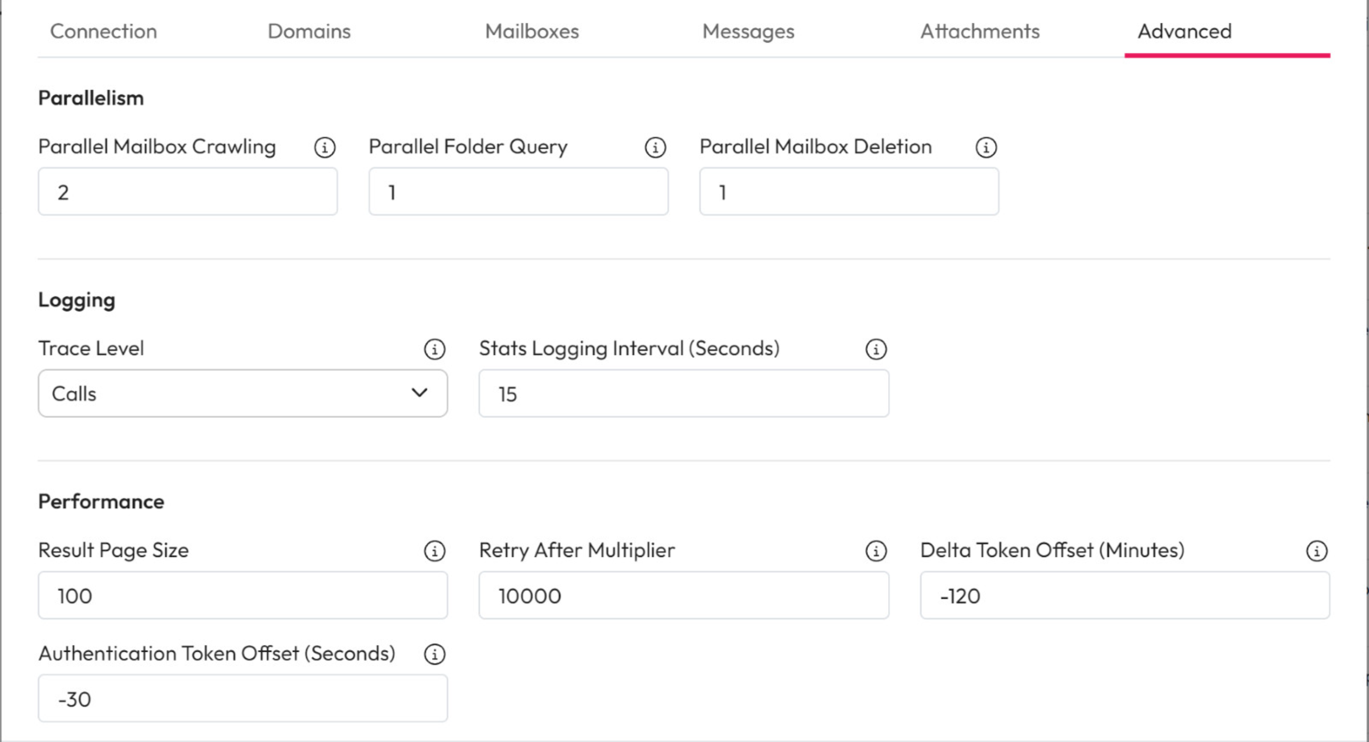 1. **Parallel Mailbox Crawling:** Enter the maximum number of mailboxes that should be crawled at once.