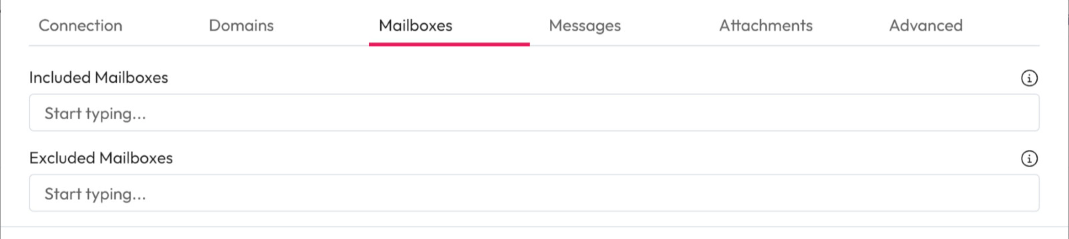 1. **Included Mailboxes:** Choose to crawl specific mailboxes only. Enter the email addresses you want to crawl using Regular Expression.&#x20;