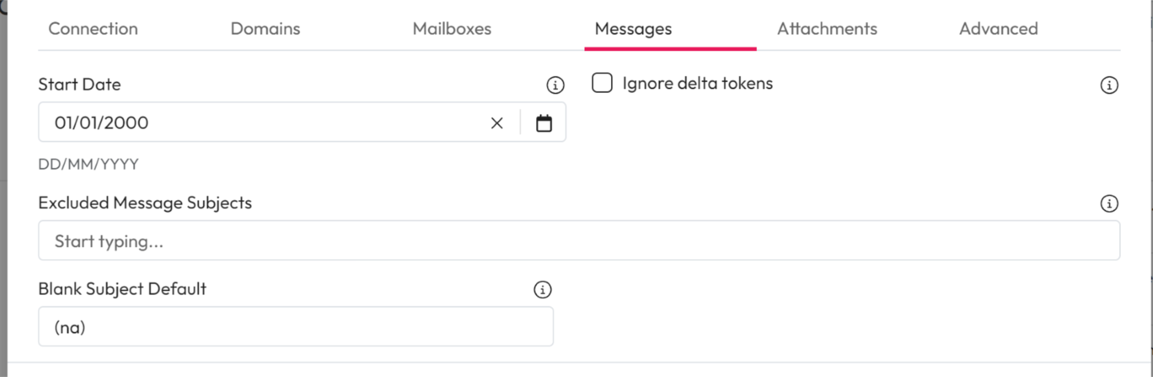 Ignore delta tokens: Check this to ignore delta tokens and re-crawl all messages.
