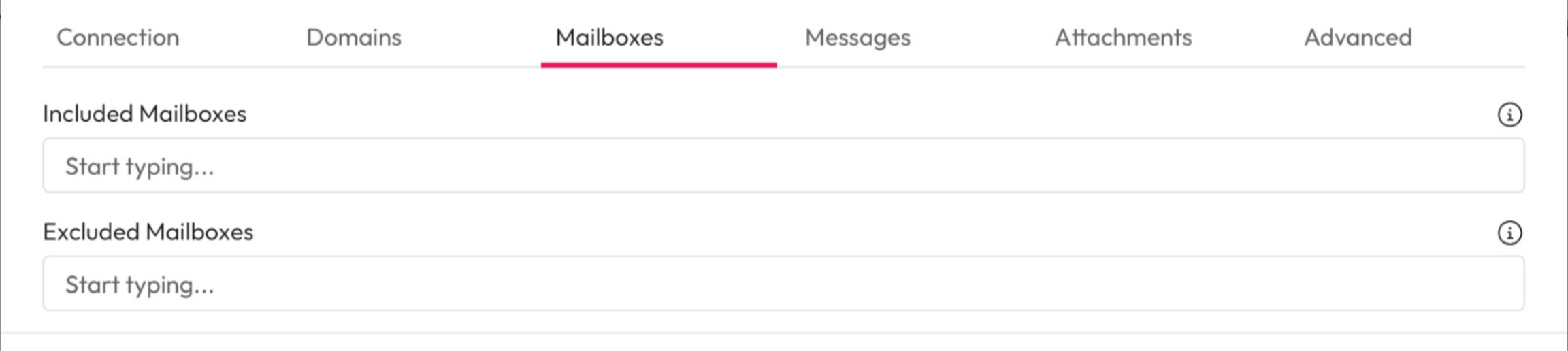 Excluded Mailboxes: Choose to exclude specific mailboxes only. Enter the email addresses you don't want to crawl using Regular Expression.