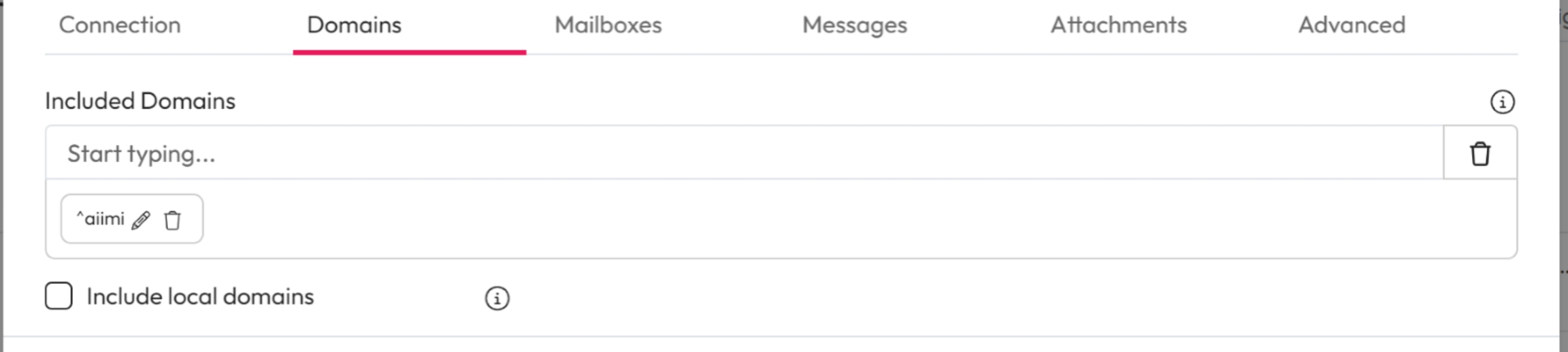 Included Mailboxes: Choose to crawl specific mailboxes only. Enter the email addresses you want to crawl using Regular Expression.