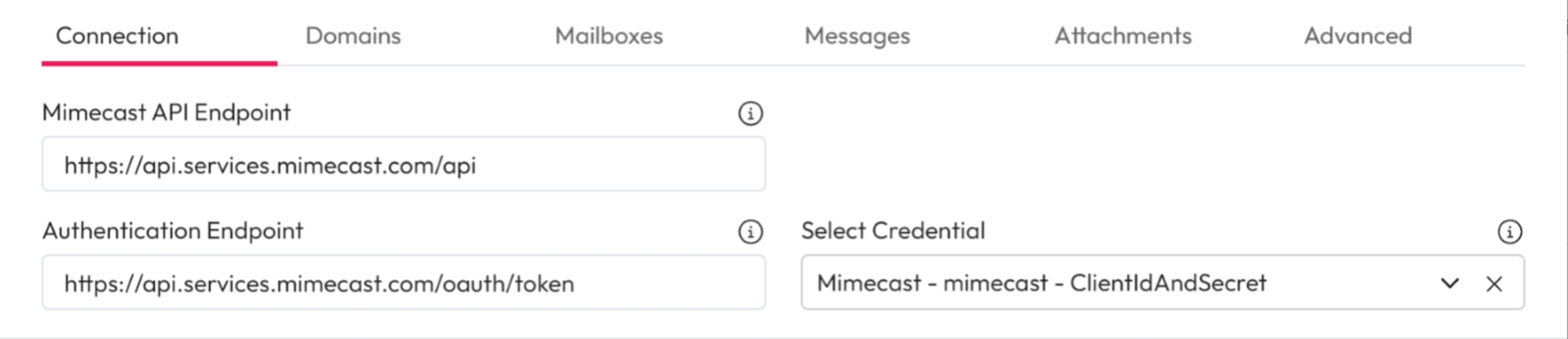 Select Credential: Choose the Mimecast Client ID and Secret from the dropdown.
