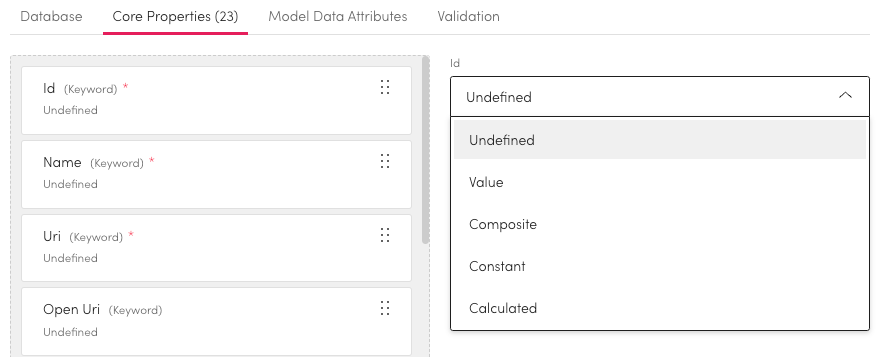For each file property you can choose its type. By default all properties will be undefined, you can choose between: Undefined, Value, Composite, Constant and Calculated. Fields marked with a red asterisk * require a definition.