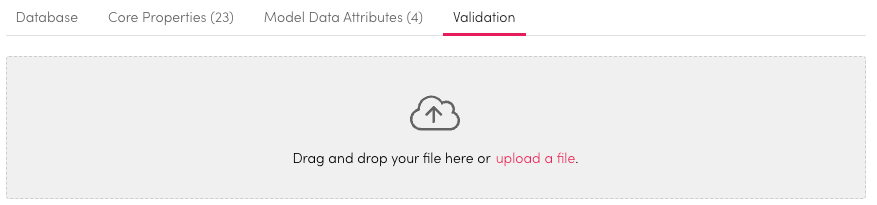 Drag and drop a file for validation or select Upload Here to find a search for a file.