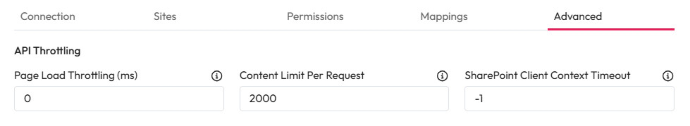 Content Limit Per Request - Enter the maximum number of requests that can be made to Sharepoint.