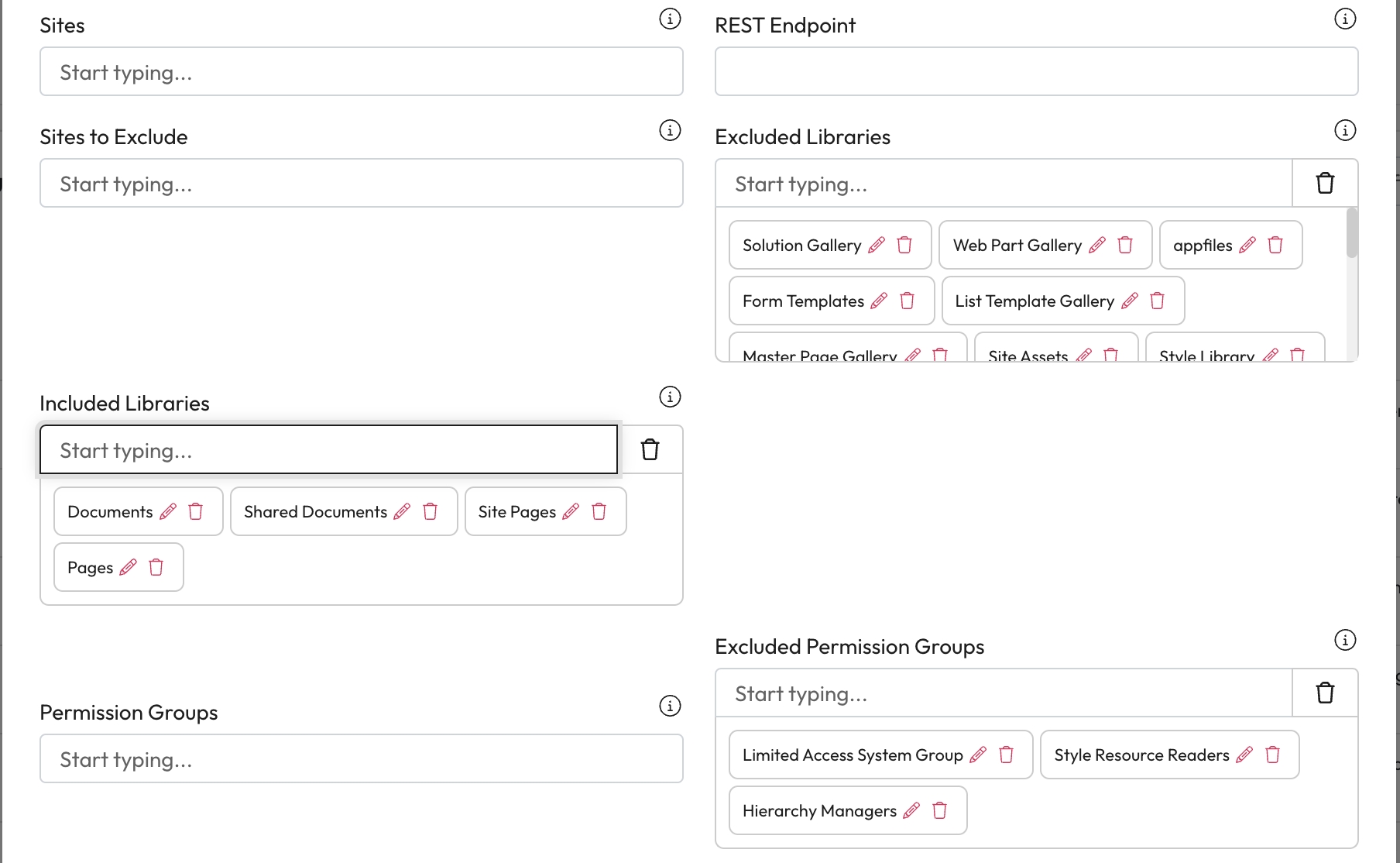 Libraries can be excluded from the Crawl by adding them to the Excluded Libraries list.