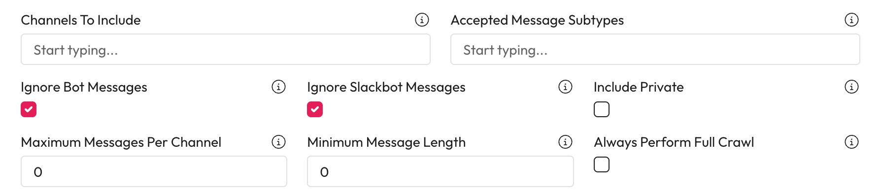 Ignore Bot Messages: Check this to not index messages from any bots or integrations.