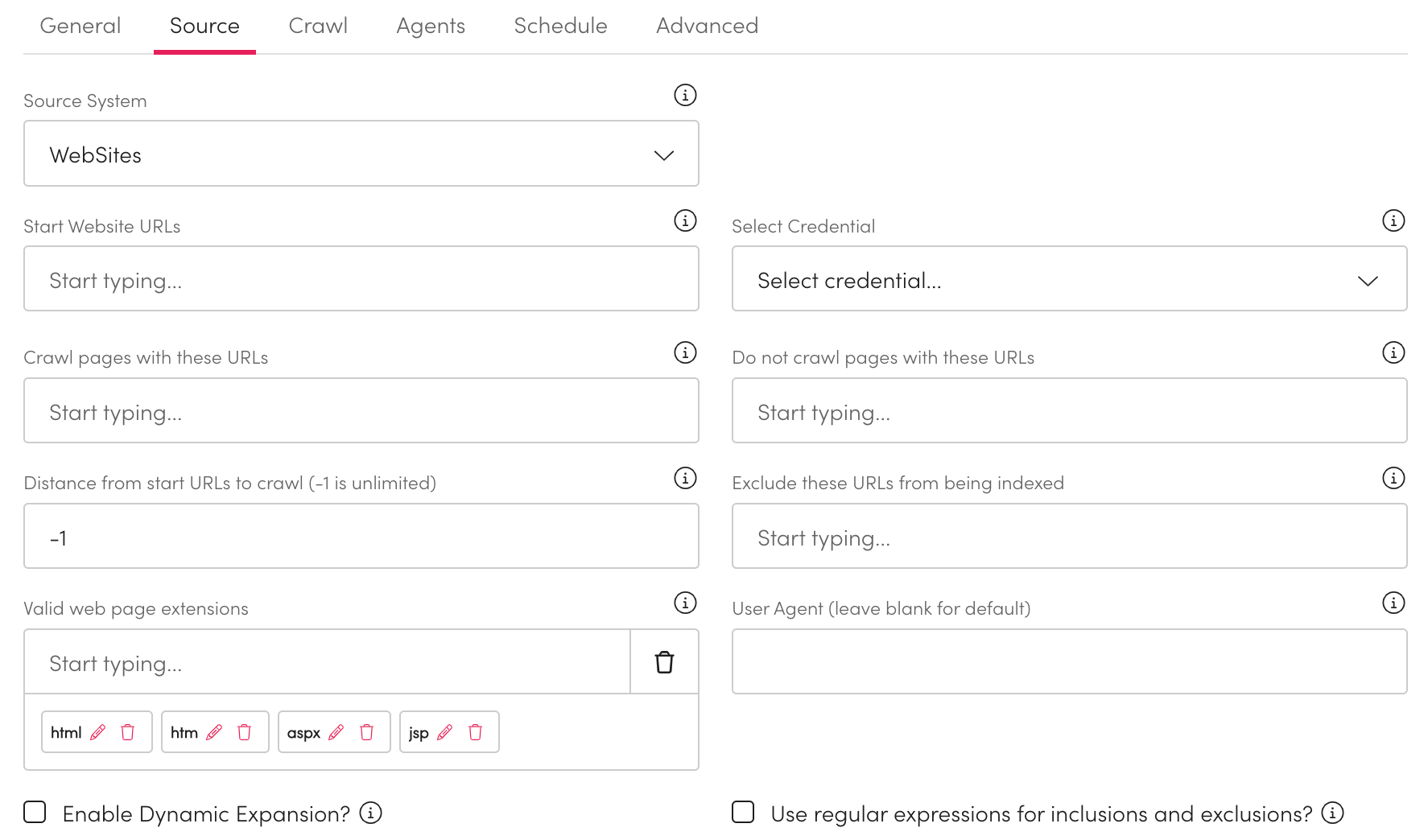 Connect your Website source to Workplace AI to make the most of your data. Once you have selected a Source System type more detail will expand to customise this. General