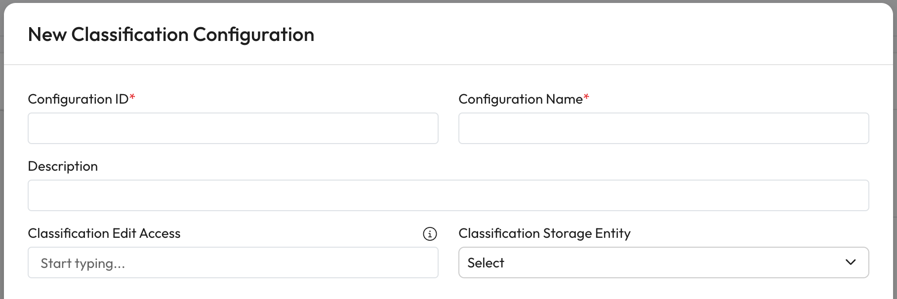 This will open the New Classification Configuration modal.