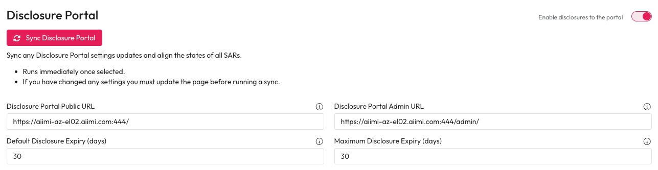 Enable disclosures to the portal - If enabled disclosures can be made via the Disclosure Portal.
