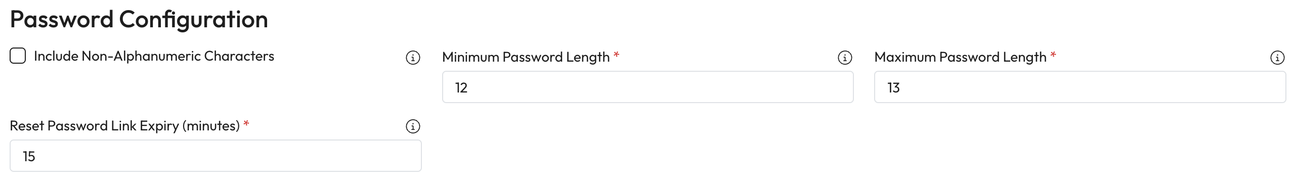 4. **Reset Password Link Expiry (minutes) -** Enter the number of minutes password reset links are valid for.&#x20;