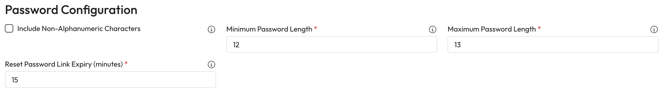 Reset Password Link Expiry (minutes) - Enter the number of minutes password reset links are valid for.
