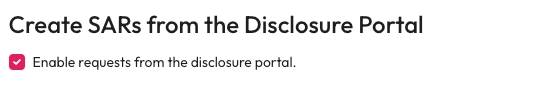 The Disclosure Portal also requires at least one SAR Subject Type to have Requests from the portal enabled for them to work. For more information on setting up a Data Subject Type use our create and manage data subject types guide.