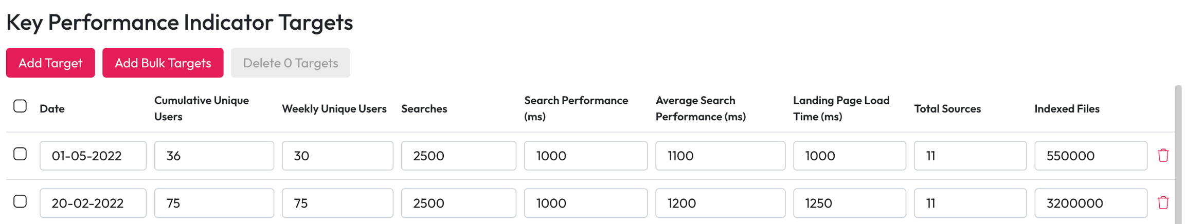 KPI targets can be added individually or in bulk through a CSV.