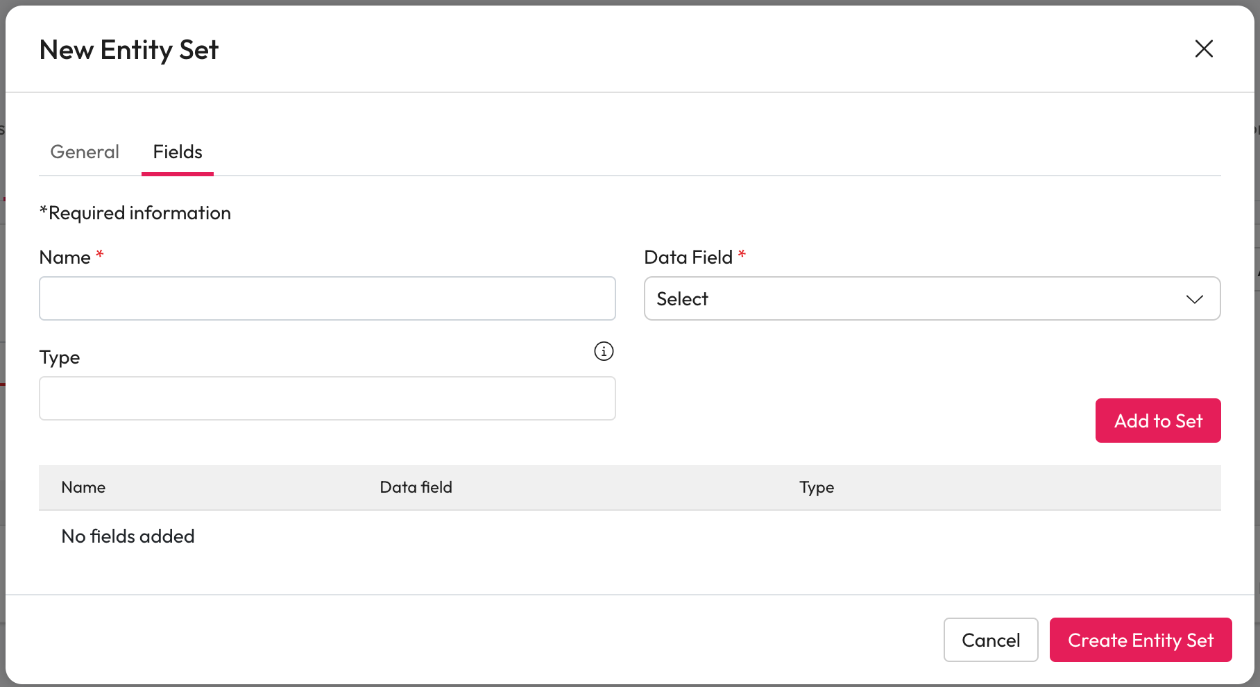 Each field will appear in a table below. You can add as many fields as you want to an entity set.