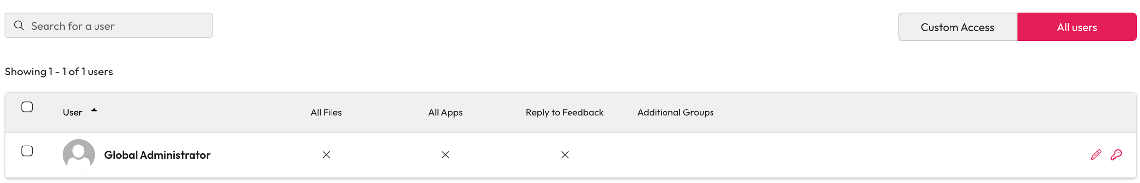 Search for a user within the search bar or, Select Show Filters and use the filters to narrow down users.