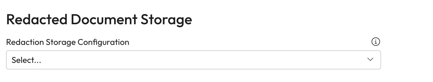 Redaction Storage Configuration: Select where redacted documents will be stored from the dropdown.