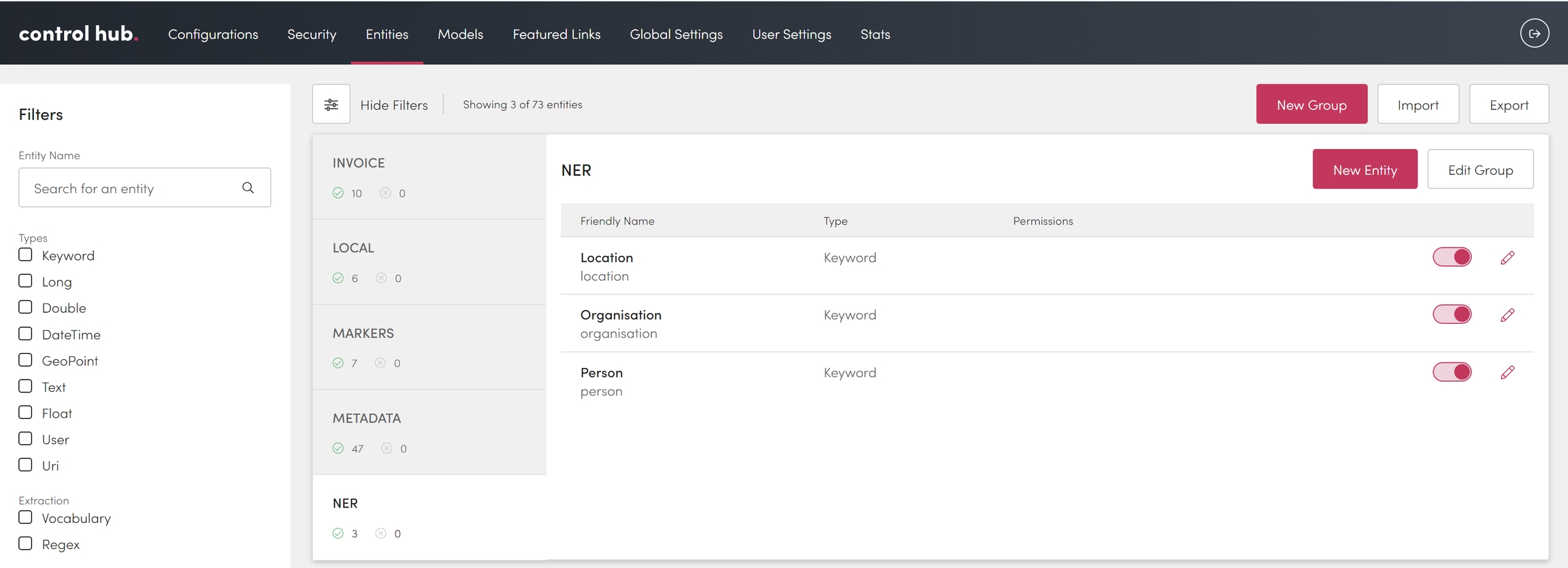 Entities store labels that are then associated with data and document items. Entities help discover, link and visualise information in Workplace AI.