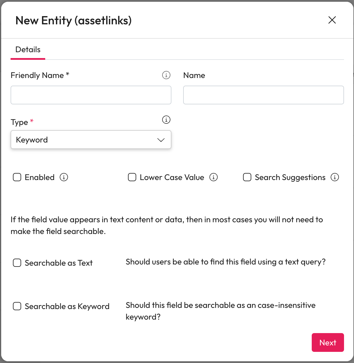 Searchable as Text - If checked, users can find this field using a text query.