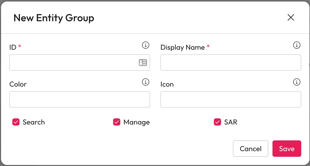 Entities are categorised and live within entity groups. You can add entities to existing groups, edit groups and create new groups.