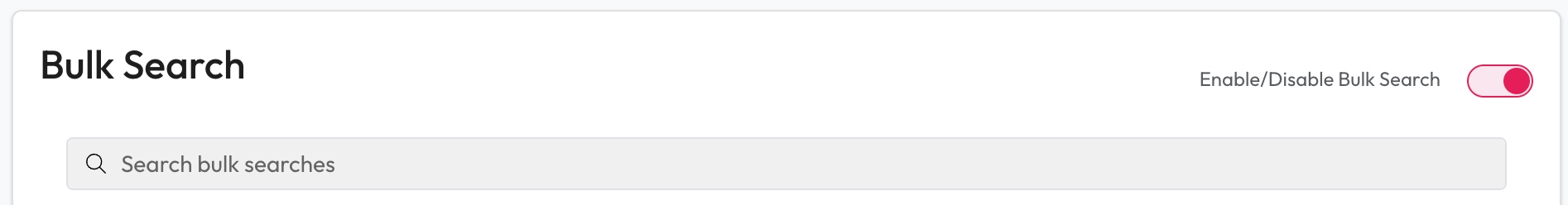 From here you can turn bulk searches off for all users and see all the current bulk searches set up. You can turn a search on or off and delete them from here.