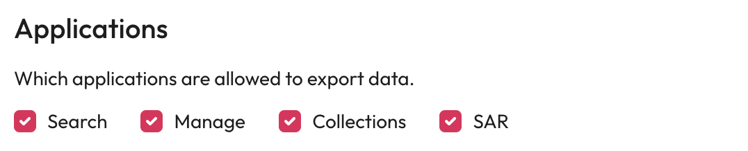 * **Which applications are allowed to export data** - Check which applications can have data exported from them.