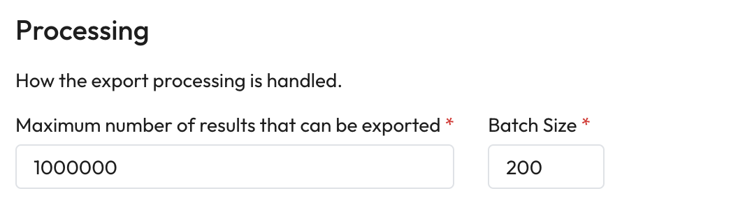 * **Maximum number of results that can be exported** - Enter the maximum number of search results that can be exported in one action.&#x20;