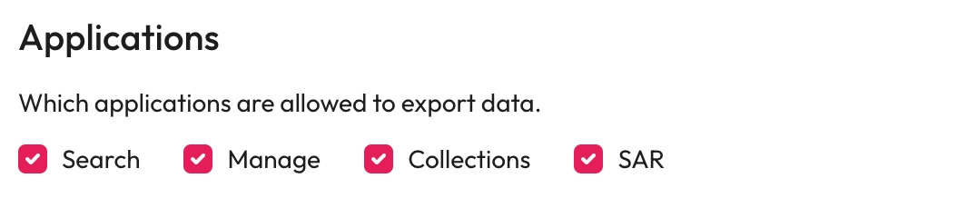 Which applications are allowed to export data - Check which applications can have data exported from them.