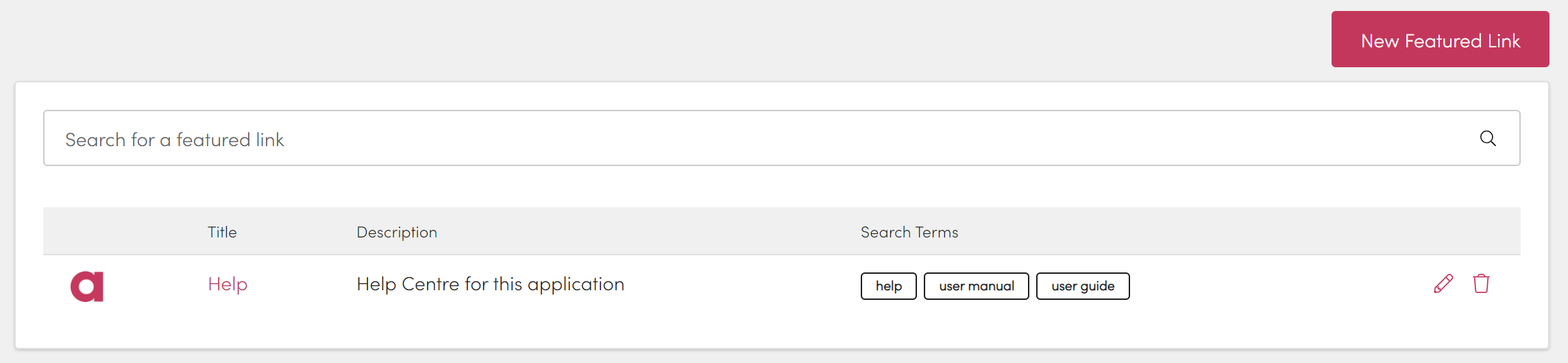 Find the featured link you want to remove and select delete.