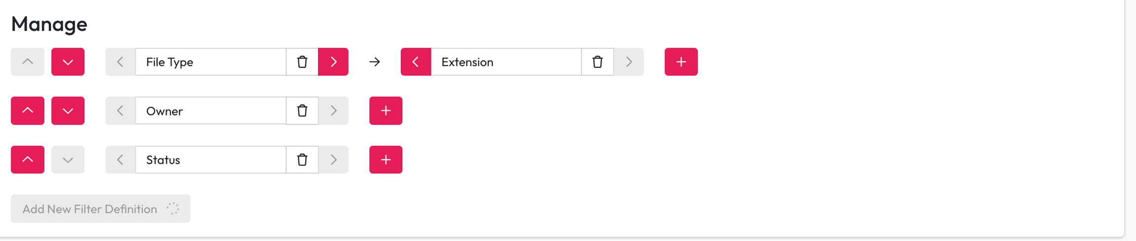 Add a new filter field by selecting Add New Filter Definition.