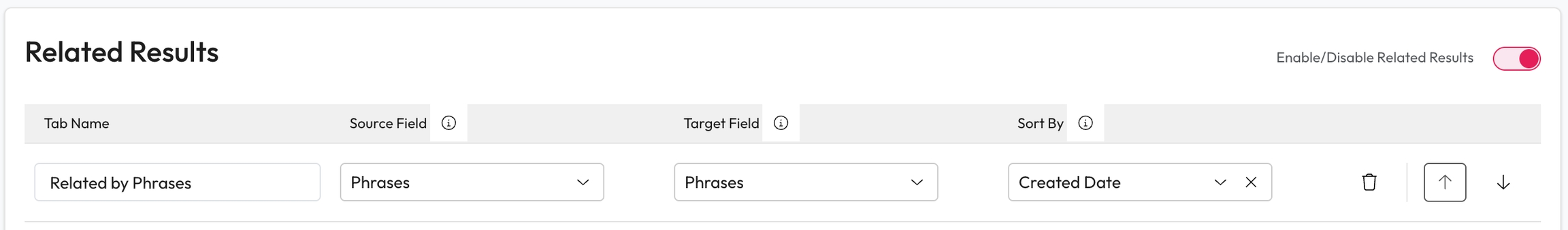 Choose an order for results to be displayed within the related results area from the Sort By dropdown.