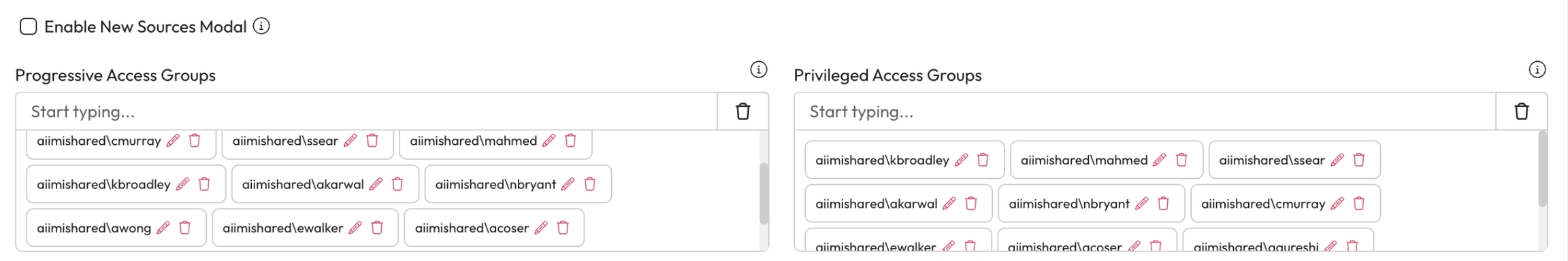 Toggle Modals Per AD User/Group - Add users and groups to this field to stop them from seeing Guided Tours, Code of Conduct and New Source Modals.