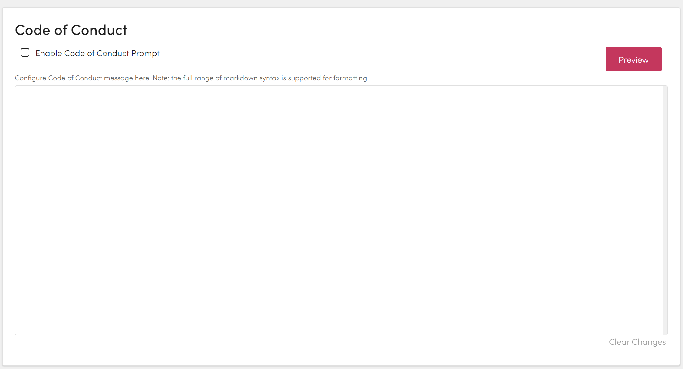 Enable Code of Conduct Prompt - Check this to enable the Code of Conduct for users.