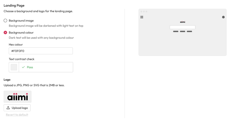 Choose the type of background and the logo to use on the Workplace AI landing page.