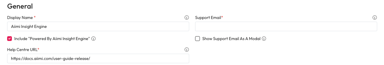 Include "Powered By Aiimi Insight Engine" - Check this to show this message within the system.