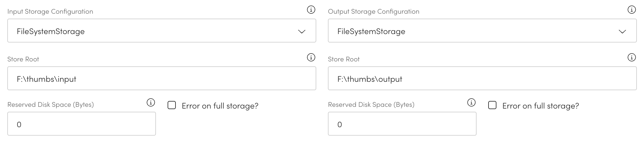 Output Storage Configuration - Select the storage for the thumbnails from the dropdown.