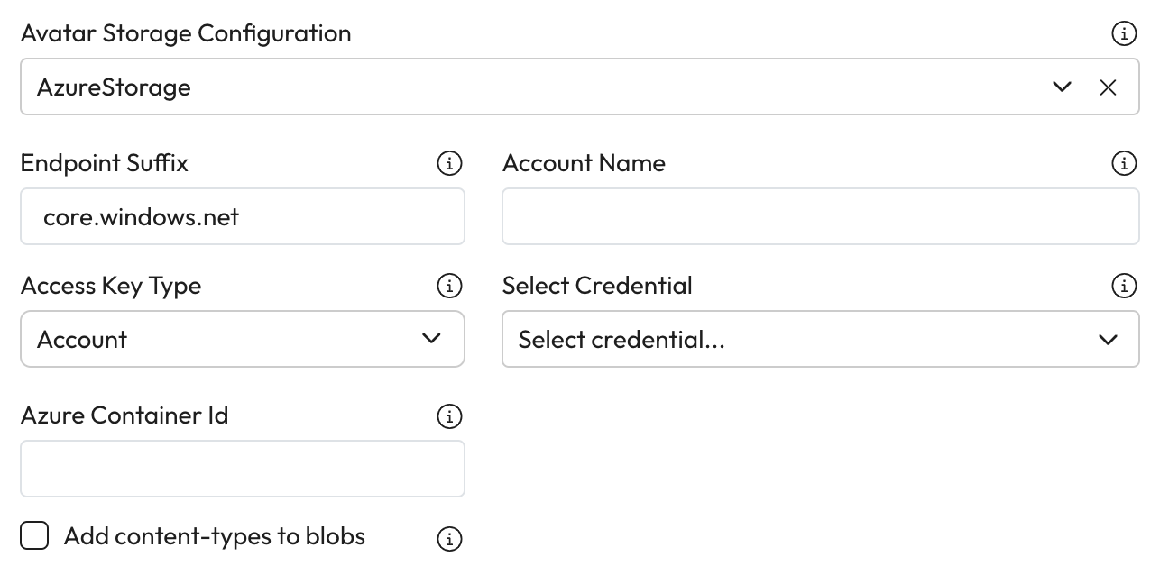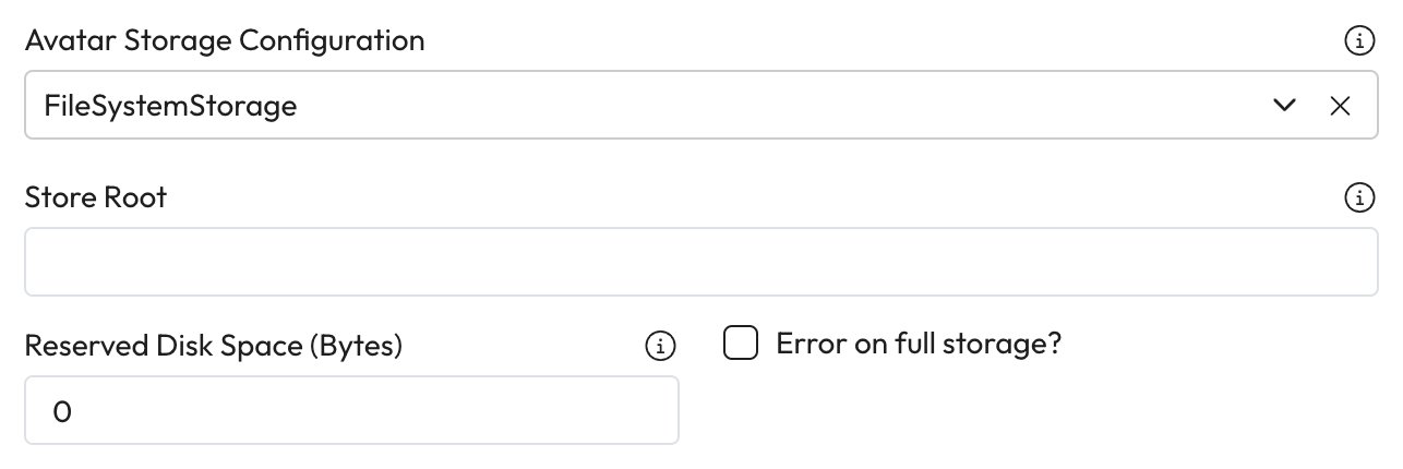 Avatar Storage Configuration: Select the storage type to use from the dropdown.