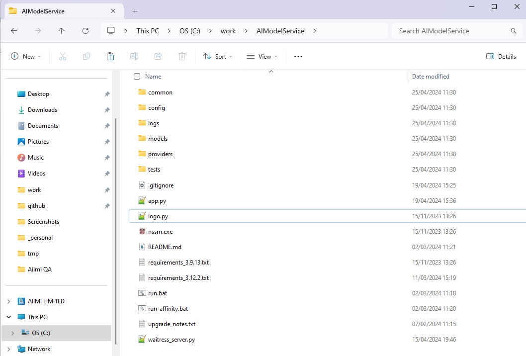 Activate your virtual environment by navigating to the AIModelService/venv/Scripts folder and running: