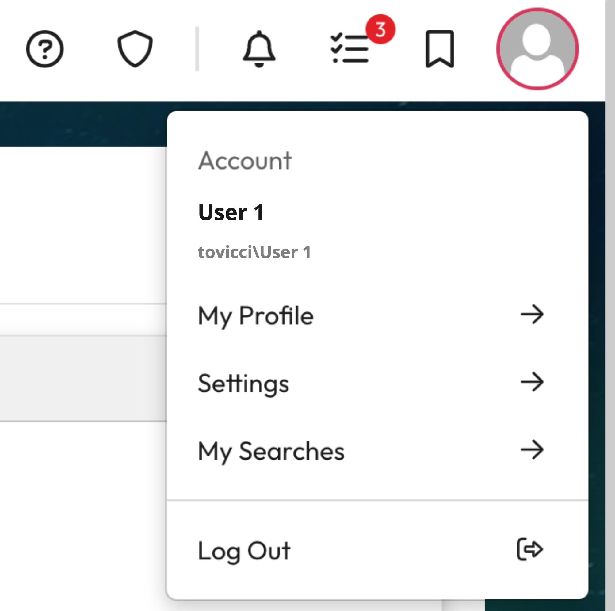 Select My Searches from the account menu.