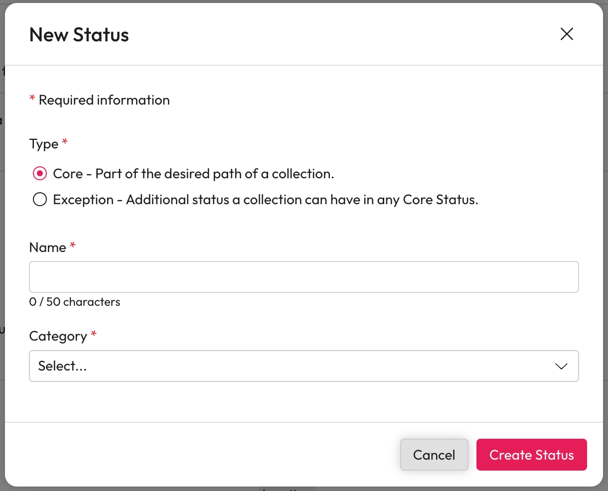 Exception - This is a sub status. For example within the In Progress core status, Researching may be an exception status.