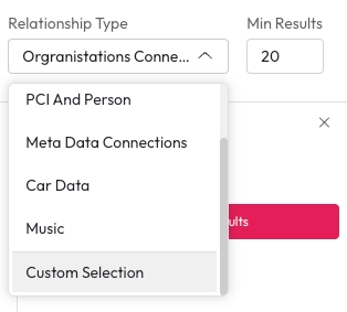 You can find different types of connections using the Relationship Type dropdown. Your administrator will have set up a few defaults for you to use. Each relationship type will look for specific entities.