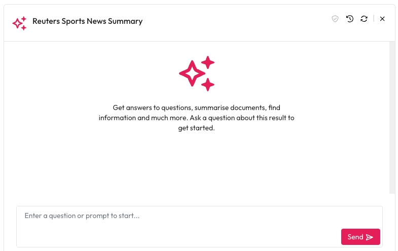 Get answers to questions, summarise documents, find information and much more with your AI helper. You can chat about one or more items from your search results list.