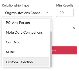 You can find different types of connections using the Relationship Type dropdown. Your administrator will have set up a few defaults for you to use. Each relationship type will look for specific entities.