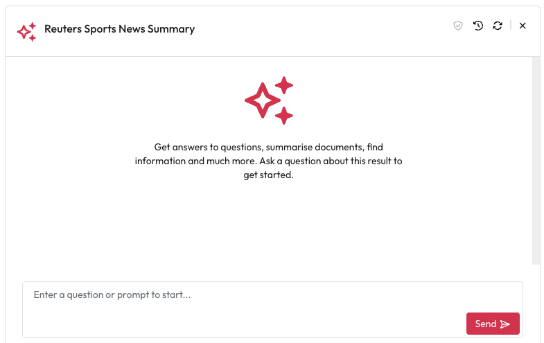 Get answers to questions, summarise documents, find information and much more with your AI helper. You can chat about one or more items from your search results list.